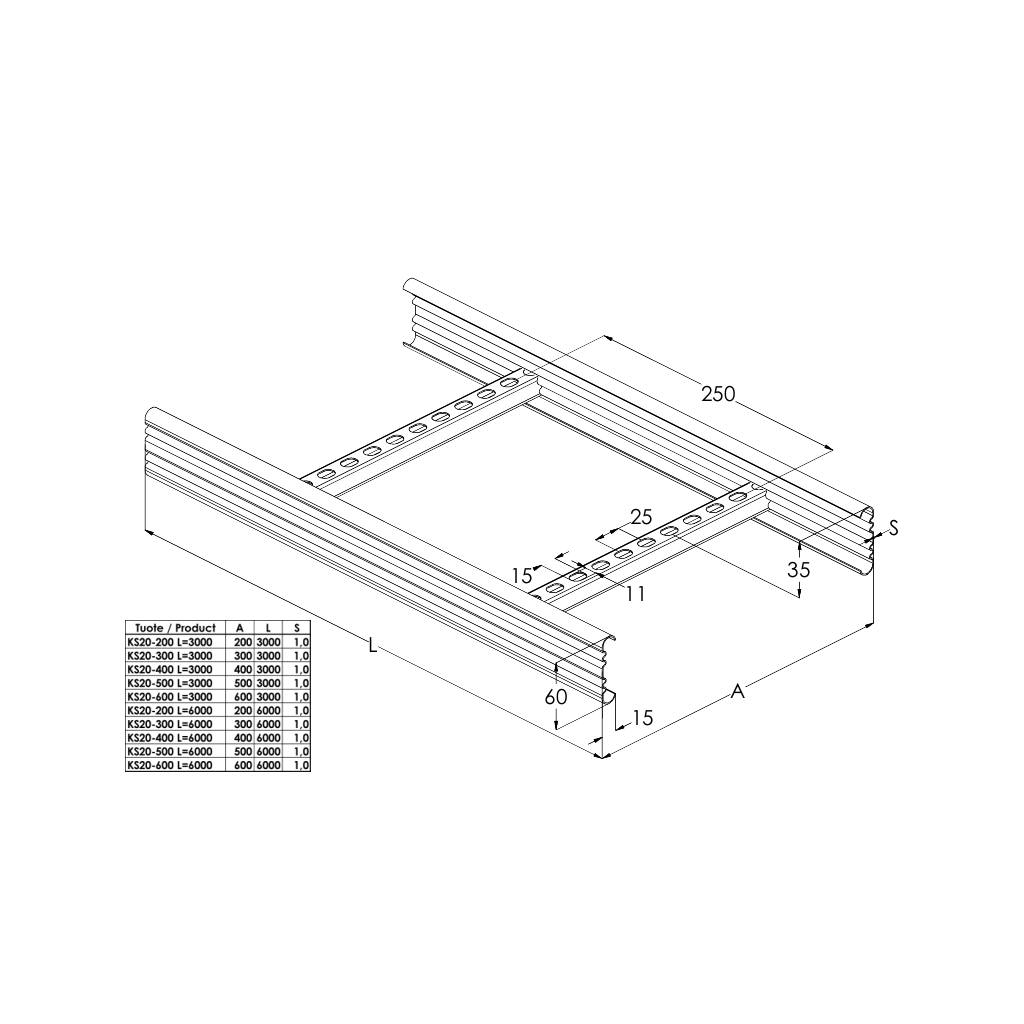 Cable ladders / KS20 / HST KS20 length=6000mm