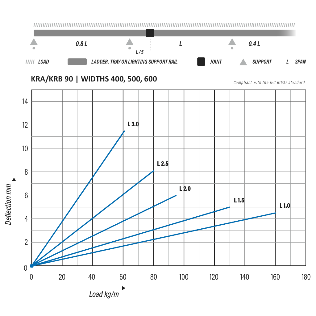 To extend KRB cable trays joints RSS can be used. Joints RSS-40-100…500 have a special forming that allow to fasten these directly to wall or ceiling supports.