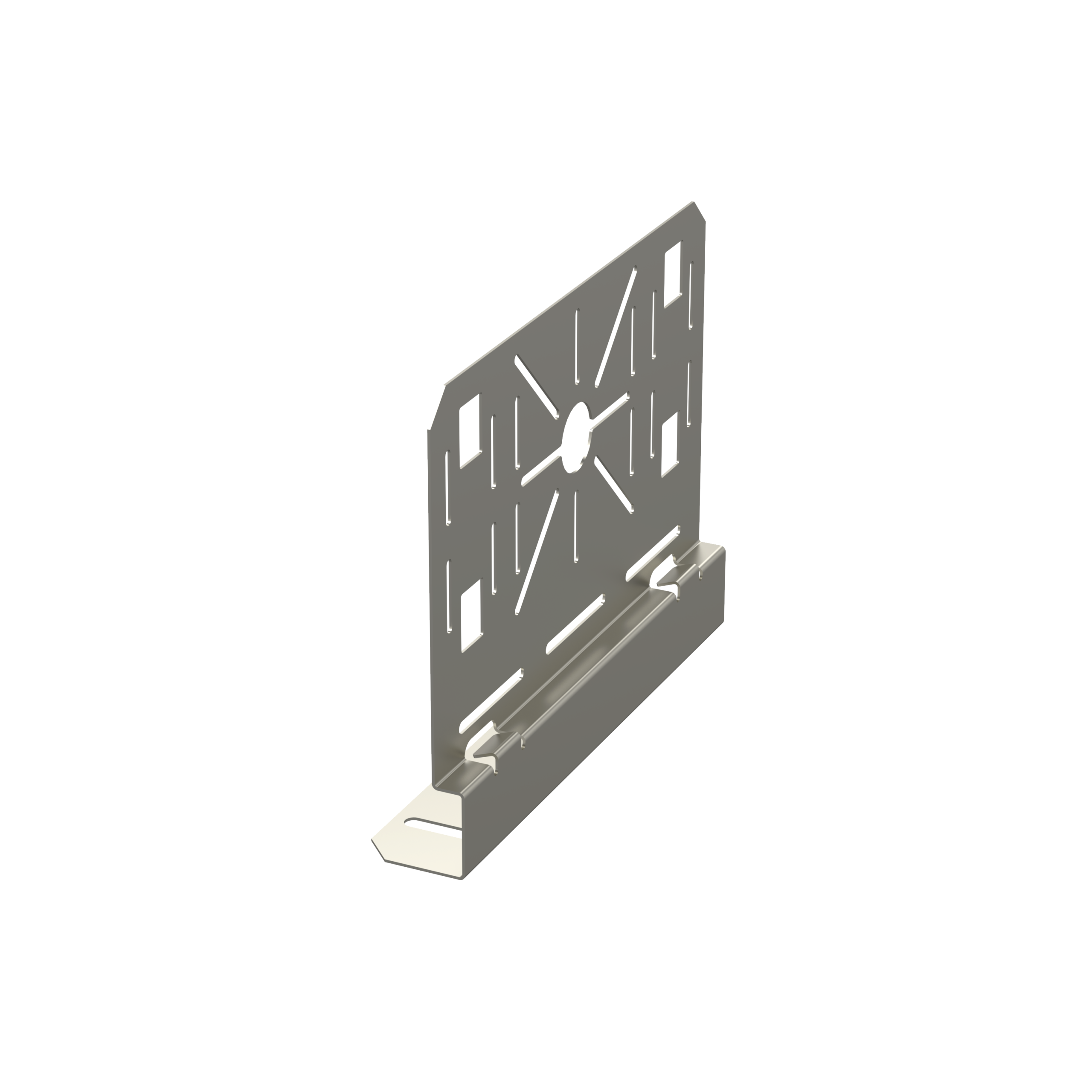 Mounting plates RDP are used for mounting junction boxes and other devices to KR-type cable trays as well as to MEK-type lighting supports rails. Mounting plates are attached to the edge of cable trays from the inside and fixed by bending the slats. For MEK, RDP plates are attached to the holes in the middle of the MEK profile with bolts and nuts. RDP plates have special perforation for fixing different kind of equipment including Keystone RJ45 jacks. The mounting plates can be twisted to hide it.