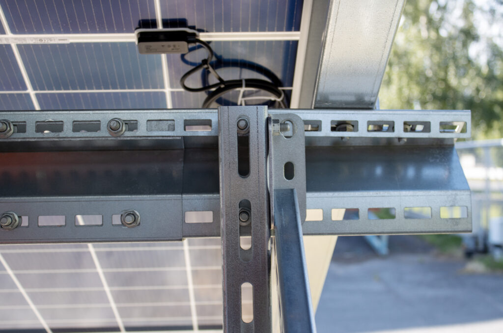Meka Giga Park är enkelt och effektivt. Stolp- och benavståndet är alltid 3,0 meter, vilket gör mätning och installation lätt. Justeringsmöjligheterna är stora i alla riktningar. Kabeldragning, rördragning, jordning samt montering av växelriktare och kopplingslådor är väl genomtänkta.