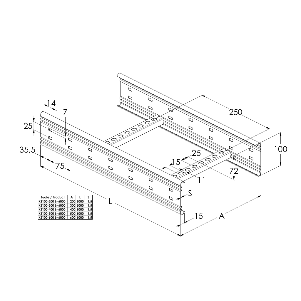 Kabelstegar / KS100 / KS100 längd=6000mm