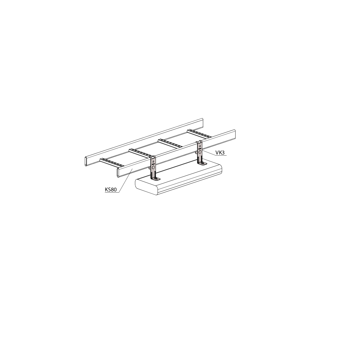 Med väggfäste VK3 fästs kabelstege på vägg/tak eller golv, för kabelstege KS20, KS60, KSE80, KS80 och KS80 SP2.0. Ger en längre distans för mera utrymme mellan kabelstege och fästyta.